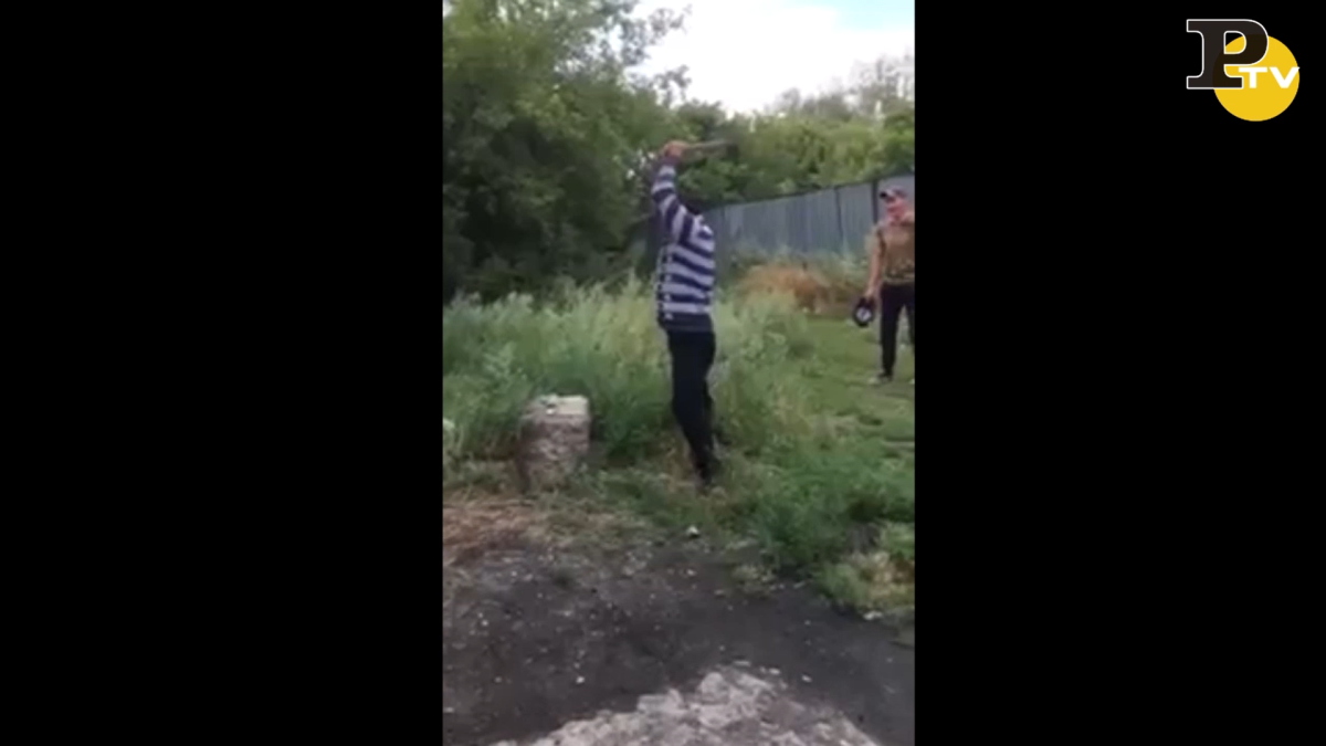 Quest’uomo è vittima di un brutto scherzo. Gli amici infatti lo convincono a tagliare un contenitore in plastica, che sembra contenere qualcosa di giallo. L’uomo con un’accetta prende la mira e con tutta la forza colpisce il contenitore. Peccato che per effetto della pressione e del materiale elastico questo gli scoppia in faccia lasciandolo completamente ricoperto dal liquido contenuto nell’oggetto. Il risultato è “fantozziano” e i presenti si piegano in due dalle risate (Youtube)