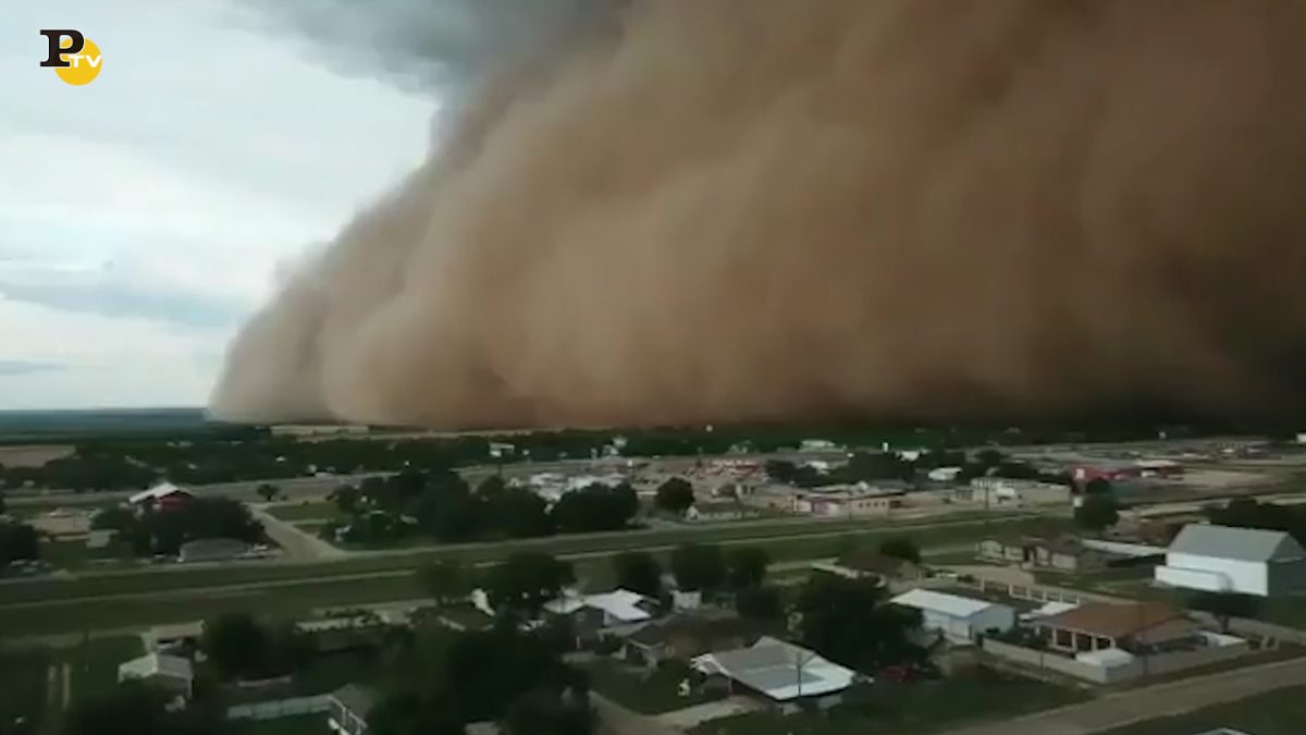Un impressionante muro di sabbia divora la città in pochi minuti. La tempesta di sabbia ha attraversato Coahoma, nella contea di Howard, in Texas.