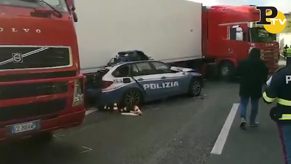 Subito dopo, però, altri quattro mezzi sono stati coinvolti nel tamponamento (Twitter: @Poliziadistato)