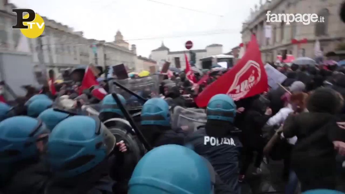 Cariche e scontri durante il corte del Primo Maggio a Torino dove i manifestanti delle lotte sociali, in piazza per protestare contro l’amministrazione Fassino, si imbattono nel muro di poliziotti intervenuti per bloccare l’accesso a via Roma.