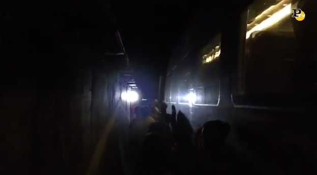 Disavventura per i passeggeri di un treno Italo della tratta Milano-Roma Termini, che a causa di un guasto irrisolvibile del convoglio su cui viaggiavano si sono trovati bloccati in una galleria all’altezza di Riano, alle porte della Capitale. I passeggeri sono giunti alla destinazione finale tramite un altro treno che come documentato da queste immagini hanno raggiunto uscendo dalle carrozze e camminando nella galleria fino ad arrivare in testa al treno su quale viaggiavano, dove si era posizionato il mezzo di soccorso.