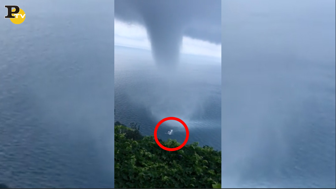 Una tromba d’aria dalla larghezza di una quindicina di metri e molto violenta ha sfiorato una barca ferma a godersi il mare di Amalfi. Una scena incredibile, ad altissima tensione, ripresa da un uomo che ha prima notato la tromba d’aria mentre dal mare si dirigeva verso la terra poi ha ripreso gli attimi in cui la furia della natura stava per abbattersi si una piccola imbarcazione per turisti.
