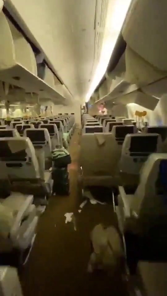 Ecco quello che resta all’interno dell’aereo della Singapore Airlines che si è trovato nel bel mezzo di una turbolenza che ha davvero fatto temere il peggio. Come vedete sembra che sia scoppiato un terremoto ed in effetti il bilancio dell’incidente è pesante: 1 morto e 30 feriti. L’aereo ha dovuto richiedere ed effettuare un atterraggio di emergenza all’aeroporto di Bangkok