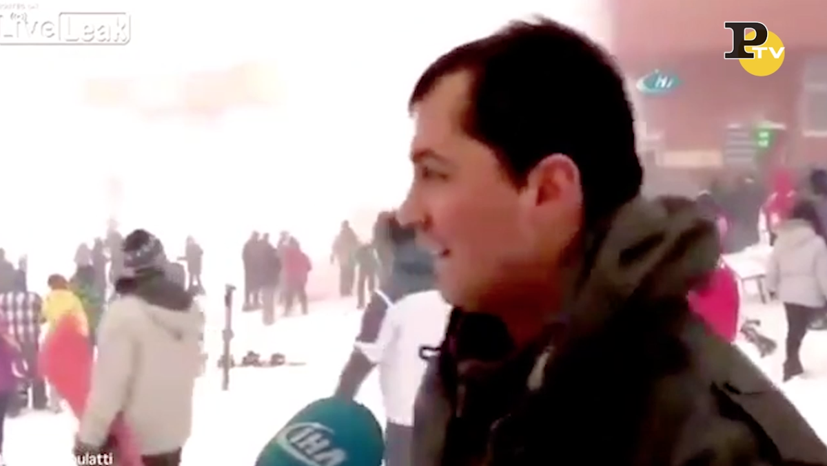 Sfortuna o poca attenzione da parte dell’albergatore di Kartepe, Turchia, che viene sorpreso da una valanga alle sue spalle mentre parla con un giornalista. Il responsabile della struttura stava spiegando al microfono come tutto andasse alla perfezione, quando una valanga ha travolto diversi sciatori alle sue spalle. Nel video anche i primi soccorsi agli sfortunati sportivi rimasti sommersi dalla montagna di neve caduta dai monti di Kartepe, località sciistica della Turchia settentrionale.