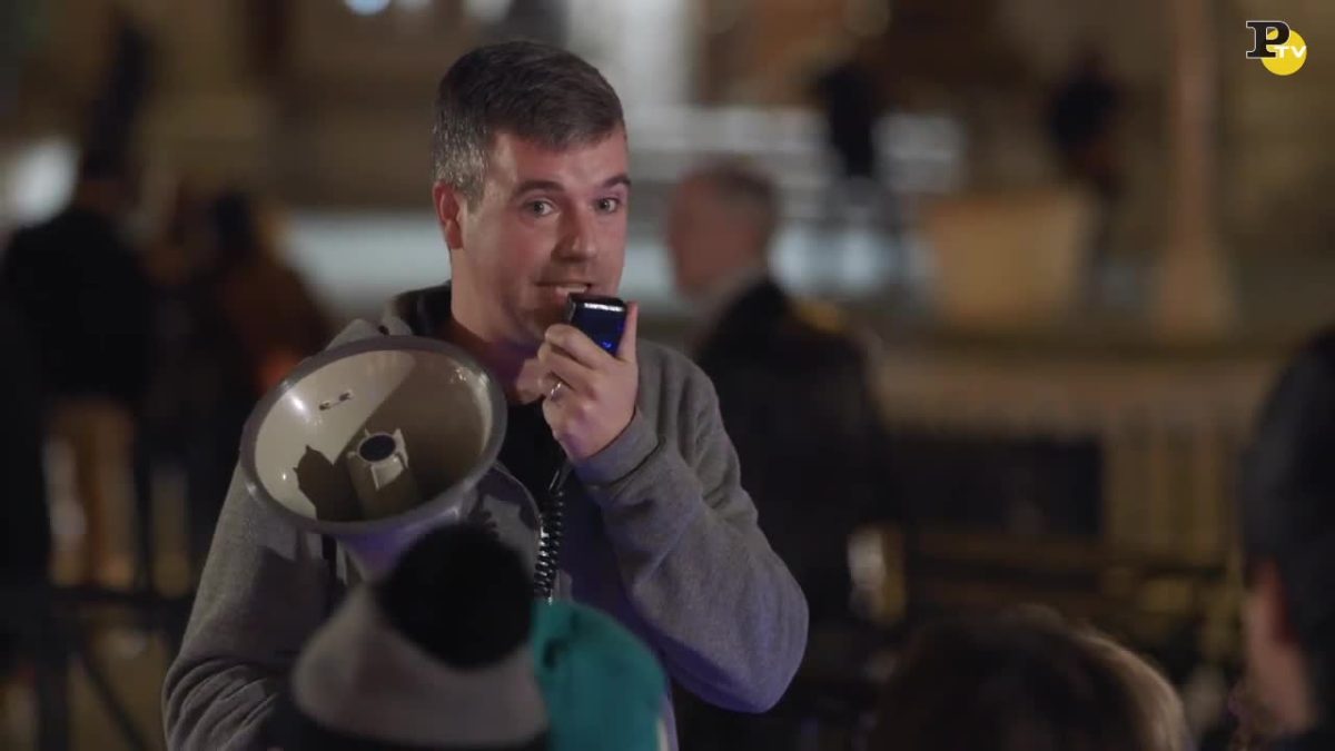 New York può risultare una città piuttosto rigida in inverno, per questo l’organizzazione di scene ed eventi Improv Everywhere ha pensato ad una sorpresa per i suoi cittadini: un interruttore gigante nella Piazza Father Demo a Manhattan. La curiosità spinge molte persone a sollevare l’interruttore per scoprire cosa potrebbe accadere, ed ecco la magia: tutte le 50.000 luci natalizie si accendono ed illuminano la piazza, gli alberi, la fontana e – addirittura – le persone.