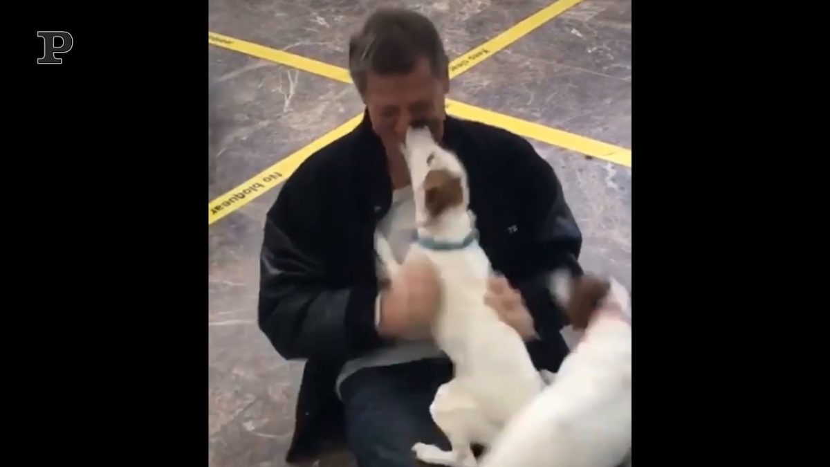 In questo video due cagnolini accolgono con grande affetto il loro padrone appena tornato da un viaggio. Chiunque vorrebbe avere un benvenuto come questo!