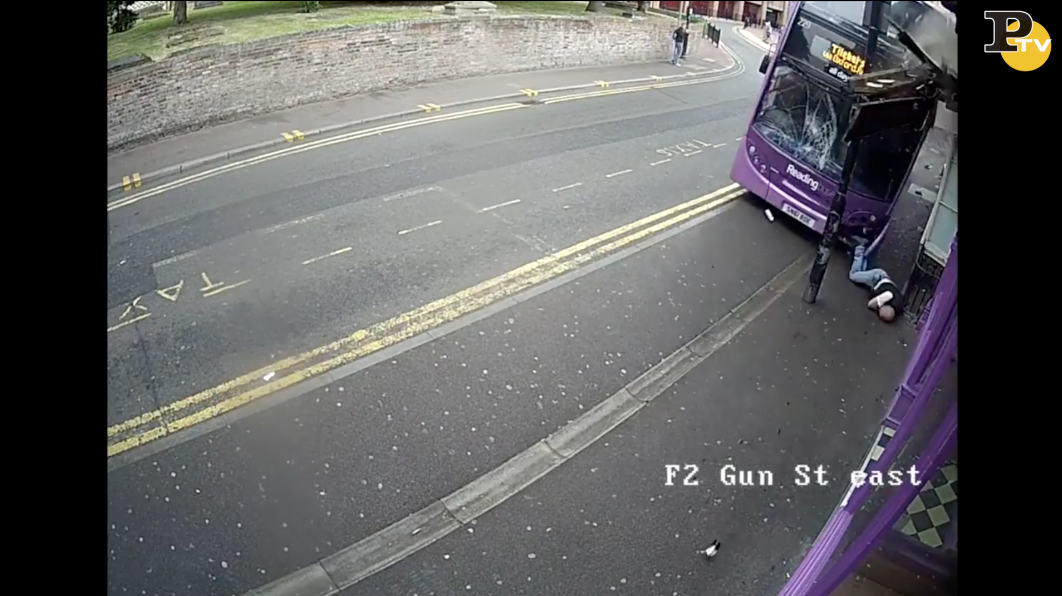 Per un attimo le immagini della telecamera lasciano poche speranze. Si teme il peggio. Invece Simon si alza e, come se nulla fosse entra nel pub dove si siede e viene soccorso da titolare e dall’autista del pullman che nel frattempo era sceso dal veicolo.