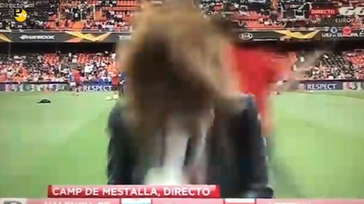 Durante il prepartita di Valencia-Arsenal, la giornalista spagnola Monica Benavent sta raccontando la sfida a bordo campo mentre le squadre si riscaldano alle sue spalle. All’improvviso una tremenda pallonata la colpisce in pieno. In studio cala il gelo; i colleghi si augurano che sia tutto a posto e fortunatamente poco dopo lei riemerge rassicurandoli e riprendendo la sua narrazione. “Mi hanno sempre insegnato che nella vita bisogna avere mucha cabeza e un sorriso”, ha commentando ironicamente l’accaduto.