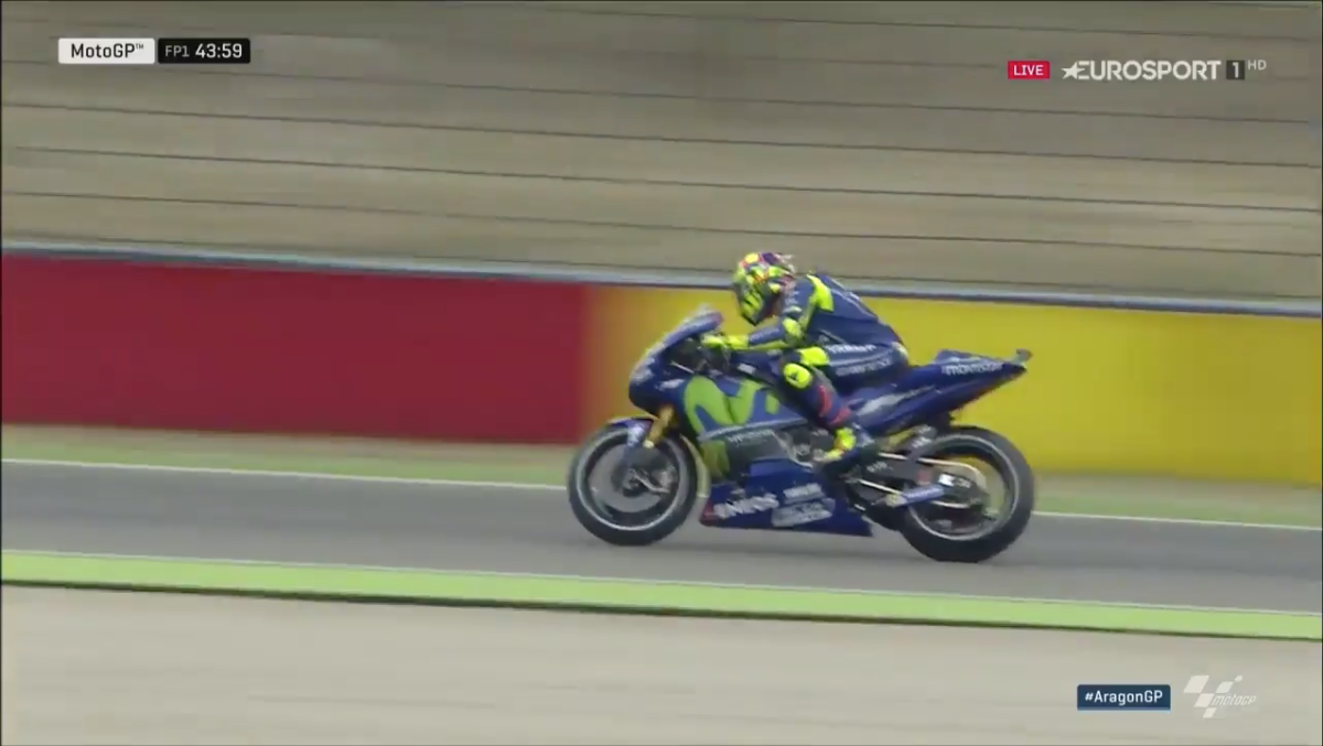 Come annunciato Valentino Rossi è sceso in pista per le prime prove libere della MotoGp in vista della gara di domenica sul circuito di Aragon. A complicare le cose per il “Dottore” anche la pioggia che ha reso la pista ancor più pericolosa.