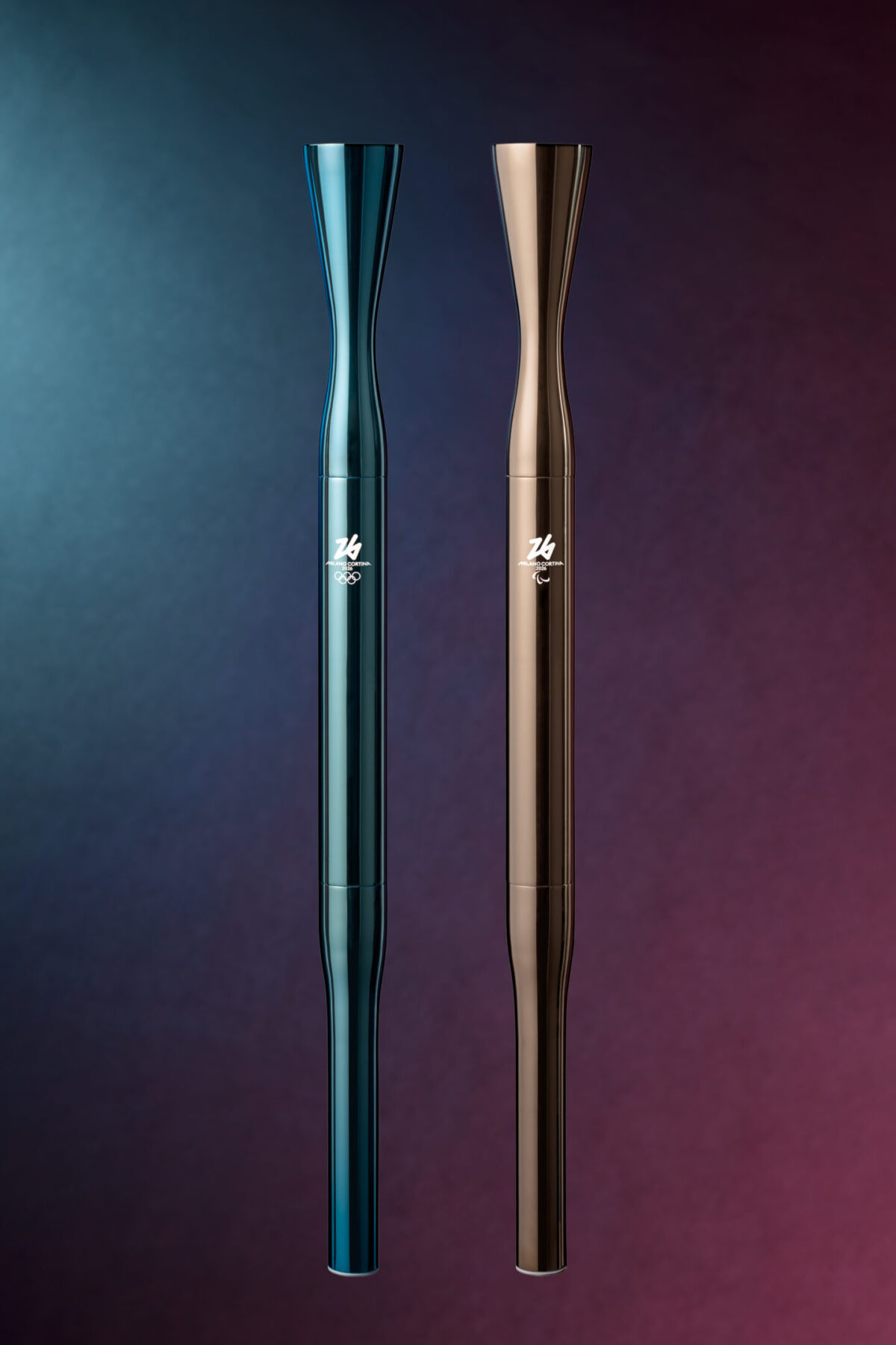La torcia olimpica presenta sfumature verdi e blu, ispirate ai cieli italiani in continuo cambiamento, mentre quella paralimpica si colora di bronzo e richiama la forza interiore degli atleti. Entrambe saranno esposte al Padiglione Italia dell’Expo di Osaka e alla Triennale di Milano da maggio 2025 fino alla fine dei Giochi.