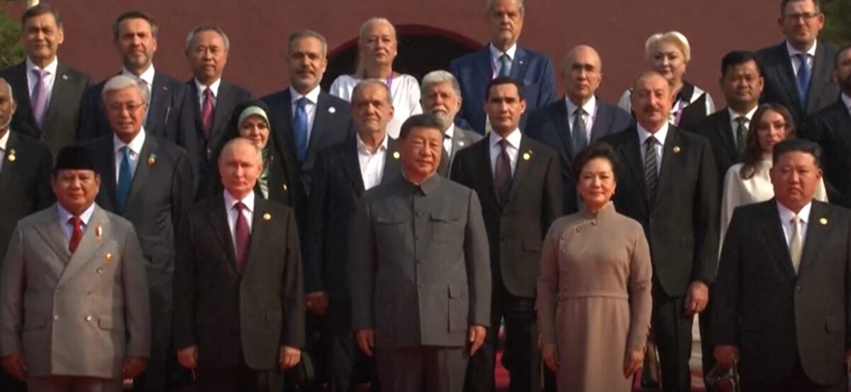 I leader, tra cui Kim Jong Un della Corea del Nord e Vladimir Putin della Russia, si uniscono al presidente cinese Xi Jinping in una foto di gruppo prima della grande parata militare che celebra l’80 anniversario della vittoria sul Giappone e la fine della Seconda Guerra Mondiale, in Piazza Tienanmen a Pechino. I soldati sfilano in fila con carri armati e sistemi missilistici in mostra.