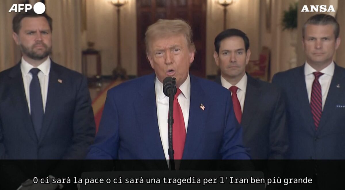 “O ci sarà la pace o ci sarà una tragedia ben peggiore per l’Iran”: con queste parole il presidente degli Stati Uniti Donald Trump ha lanciato un nuovo, durissimo monito a Teheran dopo i raid aerei che hanno colpito i siti nucleari iraniani. In un discorso pronunciato a tarda notte dalla Casa Bianca, Trump ha confermato che gli impianti di arricchimento nucleare “sono stati completamente e totalmente distrutti” e ha avvertito che l’azione militare americana potrebbe non essere finita.