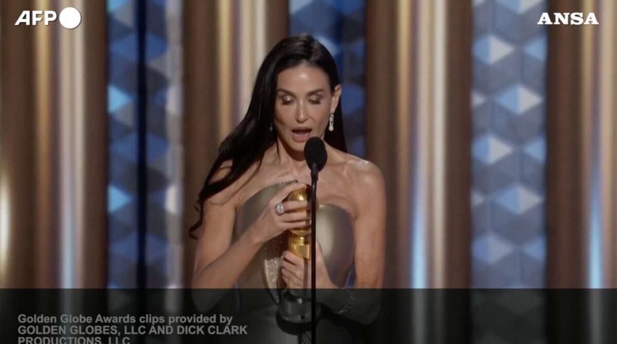 Demi Moore conquista il Golden Globe come miglior attrice protagonista per The Substance, segnando un momento storico nella sua carriera lunga oltre quarant’anni. Salita sul palco con voce emozionata e sguardo deciso, l’attrice ha ringraziato il pubblico e la troupe, ma soprattutto ha raccontato senza filtri un periodo buio della sua vita.