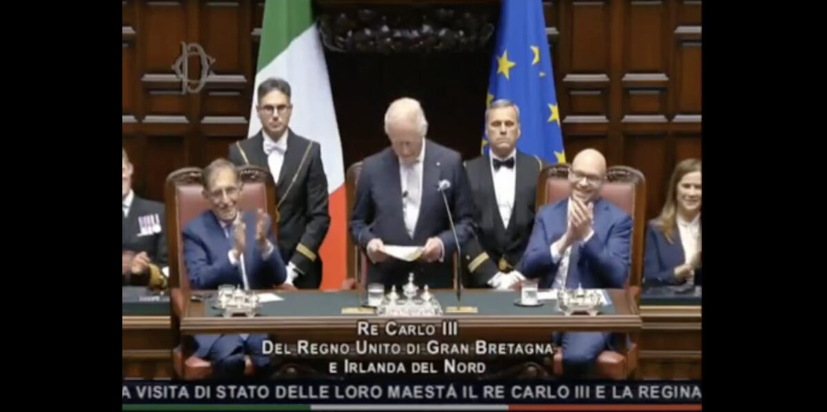Il secondo giorno della visita di Stato dei reali inglesi in Italia è stato segnato dal tanto atteso discorso di Re Carlo III in Parlamento, che è iniziato poco dopo le ore 15. Grande l’attesa per le parole del sovrano, che ha toccato vari temi, dall’amore per l’Italia ai solidi legami istituzionali tra i due Paesi. Non è mancato il suo tocco di umorismo, tipico della tradizione britannica, e la sorpresa di sentire il re parlare in italiano in più di un passaggio.